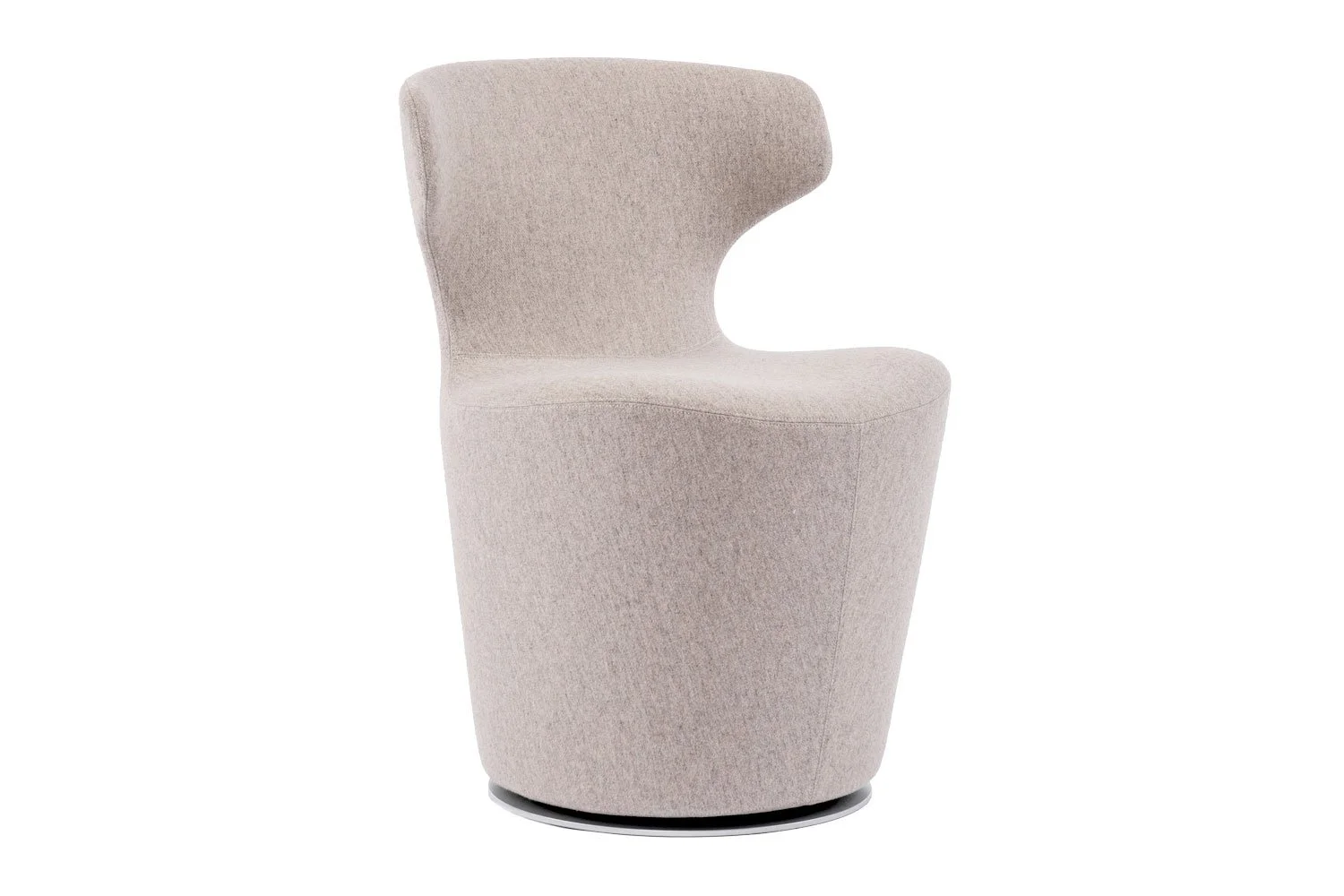 Covered in a neutral wool cashmere blend with zipper detail down back, this armchair is suited to both residential and public spaces. Internal frame is constructed with tubular steel and steel profiles and internal frame upholstery is Bayfit® flexible cold shaped polyurethane foam, polyester fiber cover and swivel base frame steel laminate and aluminium extrusion.
